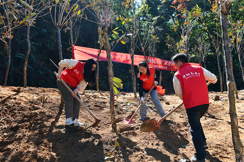 3月12日,深港青年代表在深圳陽臺(tái)山森林公園參與植樹。50余名深港青年代表、60余名少先隊(duì)員12日在深圳陽臺(tái)山森林公園共同種下101株大葉紫薇,并為“深港青年林” “紅領(lǐng)巾林”揭牌,“植”此青綠,見證深港青年友誼常青。